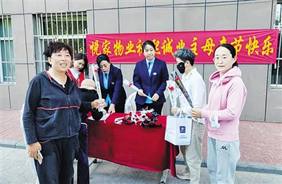 为营造文明和谐的社区氛围,提升业主的幸福感和归属感,5月12日,悦家物业在管项目熙城小区组织开展了“爱随花开,情满悦家”母亲节活动,物业工作人员用真诚和微笑为女性业主献上一份专属浪漫。