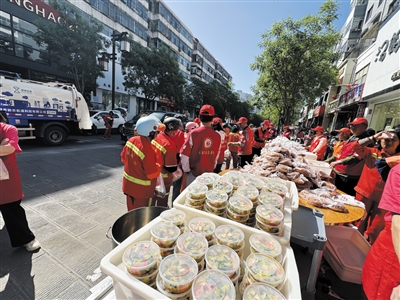 “刚刚结束晨扫就能吃到香喷喷的早饭,太幸福了!”5月17日,300多名身穿橘黄色工作服的环卫工稍事休整,陆续来到大同古城的一家火锅店,每人领到一份早餐和一个大礼包。大家脸上洋溢着开心的笑容,对饭店老板连连致谢。