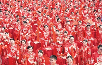 当日,中铁四局在安徽合肥骆岗公园为建设一线的职工举办集体婚礼。288对新人在亲朋好友和现场观众的见证下喜结良缘,借此倡导文明婚庆新风尚。