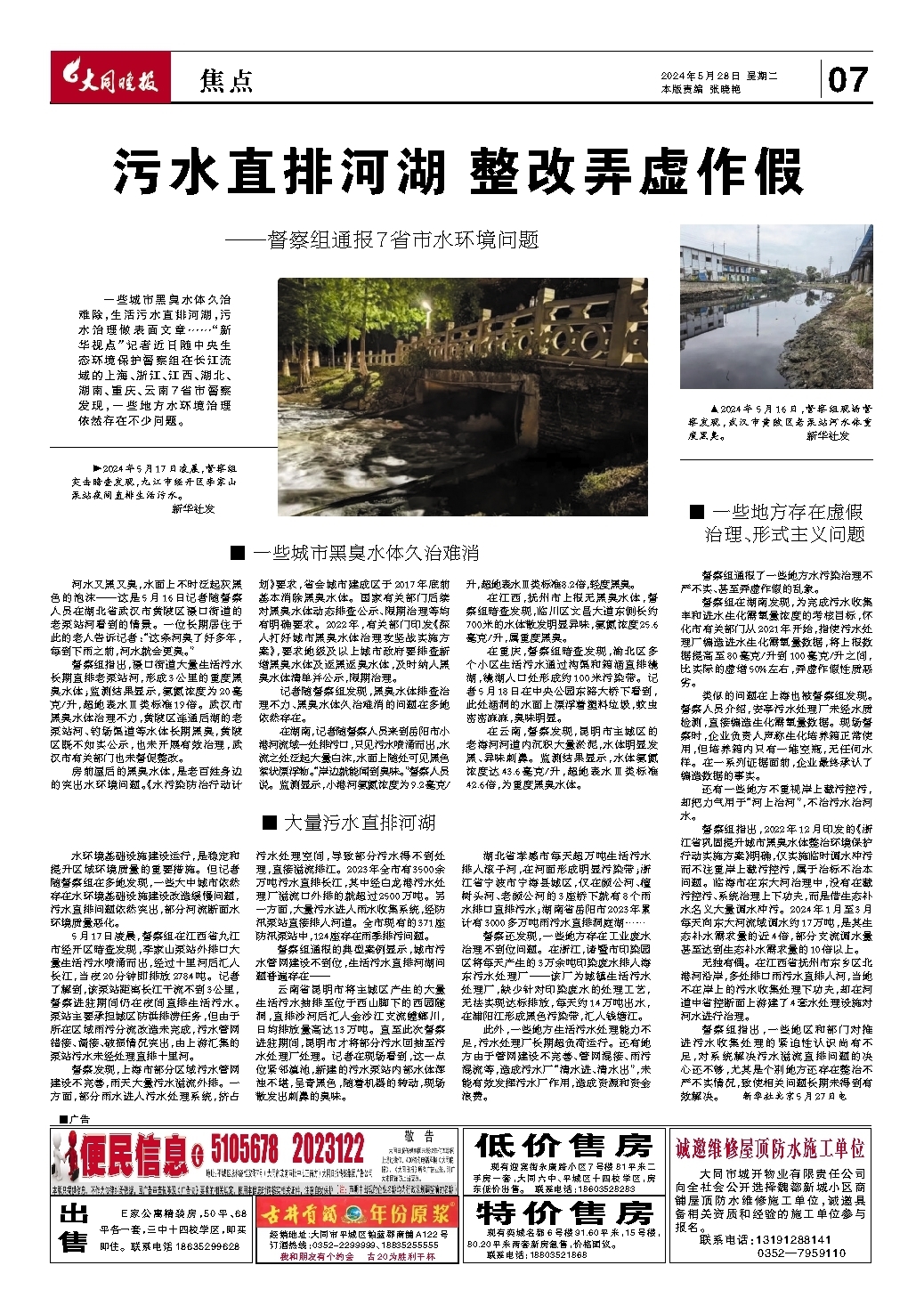 污水直排河湖 整改弄虚作假