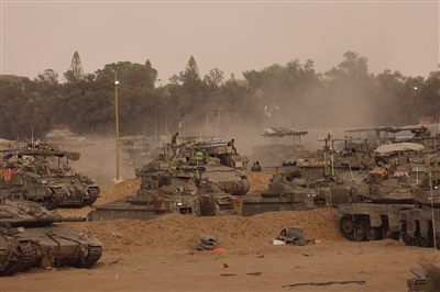 ◀ 这是5月27日在以色列与加沙边境以方一侧拍摄的以军部队。