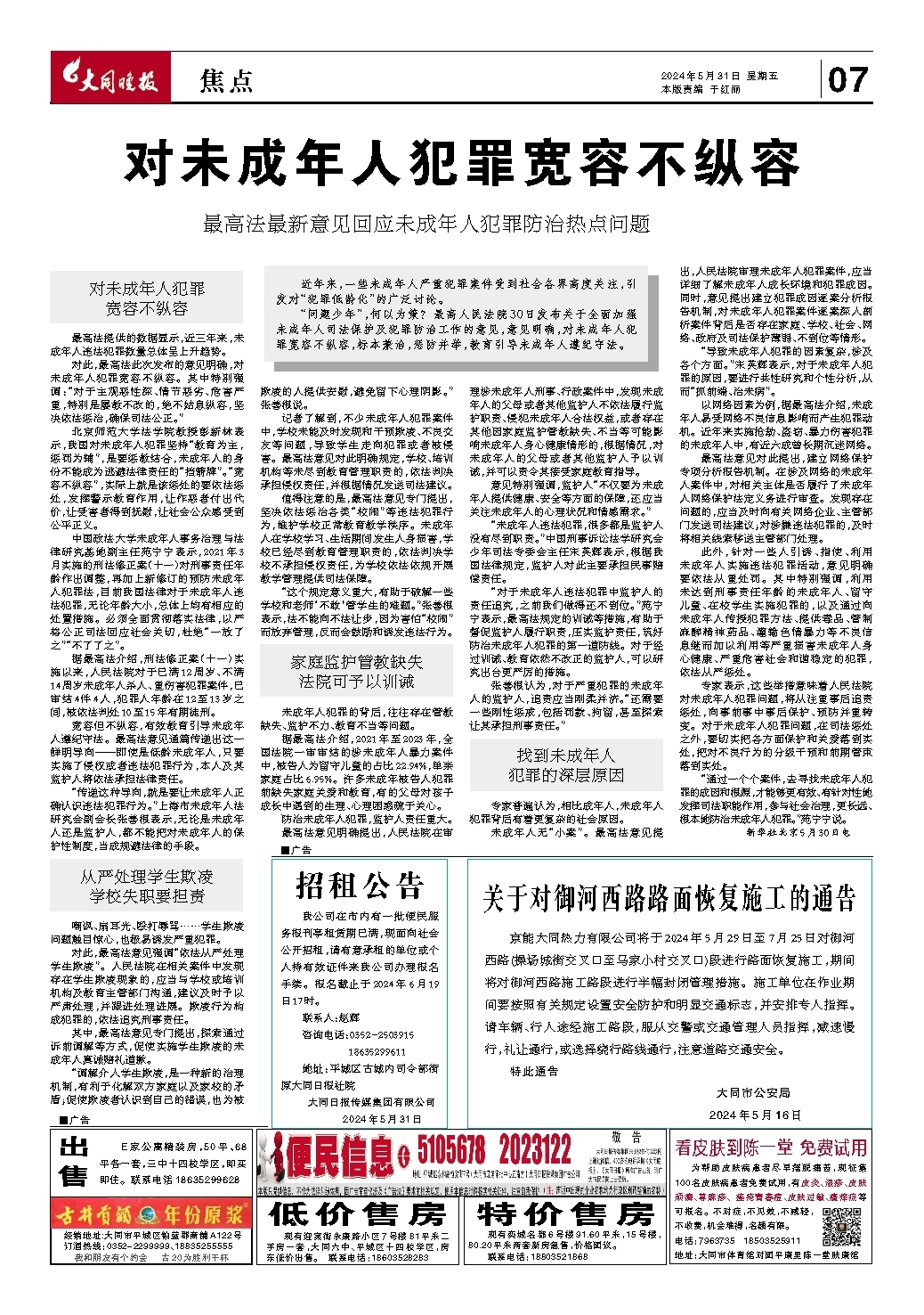 ~~~最高法最新意见回应未成年人犯罪防治热点问题