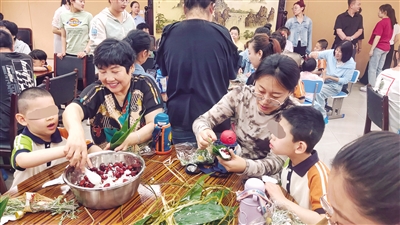本报讯 (记者 龙中华) 昨日,市特殊儿童康复教育中心举办制作艾草花束、包粽子达人赛,在轻松有趣的活动中,让孩子们感受浓浓的端午氛围。