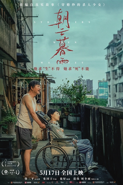 由张国立执导,范伟、周冬雨主演的电影《朝云暮雨》,改编自真实故事《穿婚纱的杀人少女》,讲述了一个颇有些争议的故事——刑满释放人员老秦(范伟饰)服刑27年后出狱,只想娶妻生子,开启新的人生,却意外结识同样刚出狱的女孩常娟(周冬雨饰)。正如电影海报上的那一句——他求子,她求财,“同是天涯沦落人”的两个人开始了一段各怀目的的利益婚姻。