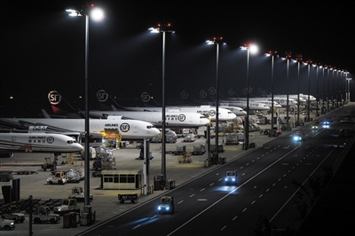 ▲5月25日凌晨拍摄的鄂州花湖国际机场停机坪一角。