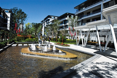 如今小区已是实景现房,高端品质完美呈现。步入小区大门,迎面的山林飞瀑、镜水映月水系环绕, 沿路看着俊朗大气的楼群,特色景观造型独特,园林绿化疏密有致、一步一景,营造出现代时尚、轻松惬意的花园式小区。清新的空气、美好的环境,令人心旷神怡。可以说,兰溪苑不遗余力全力打造豪宅美学风范,将美的细节一一落实到位。