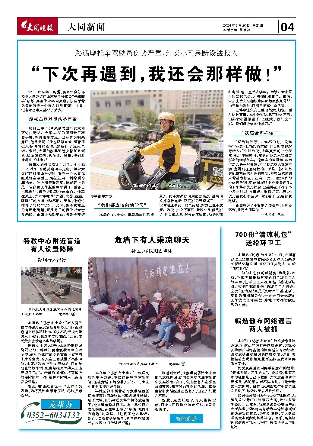 路遇摩托车驾驶员伤势严重,外卖小哥果断设法救人~~~