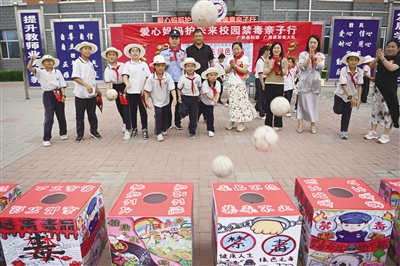 6月26日是国际禁毒日。20日,广灵县妇联联合县公安局禁毒大队来到斗泉九年制学校,为师生们带来一场禁毒主题趣味游戏比拼,寓教于乐,引导学生筑牢远离毒品的思想堤坝。图为学生参加禁毒投篮趣味游戏。