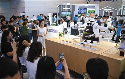形态可掬的冲咖啡机器人、大型的全伺服自动冲压生产线、盖高楼犹如“搭积木”的造楼机……正在天津举行的2024世界智能产业博览会上,以“智”促“新”的场景扑面而来,数智技术正成为传统产业锻造新质生产力的引擎。