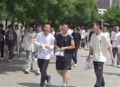 昨日,2024年中考落下帷幕。图为考生们信心满满走出考场。 本报记者 戎禹仁 摄