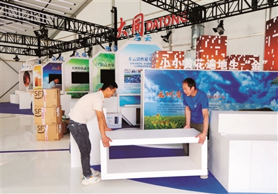 第二届山西特色专业镇投资贸易博览会将于7月3日至5日举行。7月1日,记者在南城墙关城看到,各展区已搭建完成,参展实物正在陆续进场。