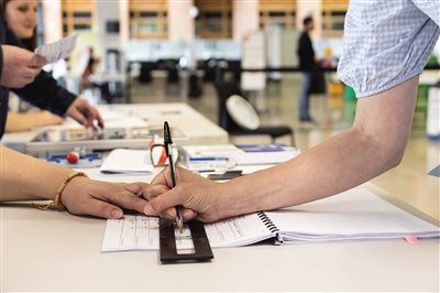 ▲ 6月30日,人们在法国北部城市里尔一处投票站投票。