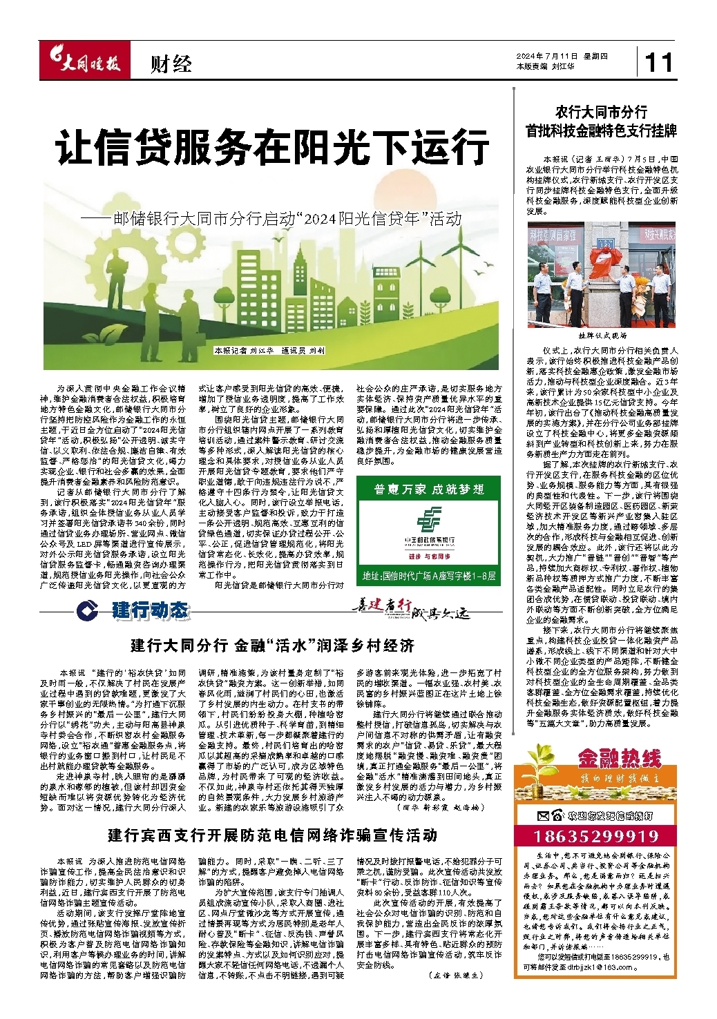 ~~~—邮储银行大同市分行启动“2024阳光信贷年”活动