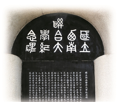 云南师范大学校园里矗立着闻一多塑像。《重走:在公路、河流和驿道上寻找西南联大》对1938年40岁的这位清华大学教授多有记述,作为湘黔滇旅行团带队教师,闻一多一路历尽艰辛,但他仍然意气风发,还蓄须明志,表示不驱逐倭寇决不剃去胡须。1946年5月4日,国立西南联合大学纪念碑落成,文学院院长冯友兰撰写碑文、中文系主任罗庸教授书丹,中文系教授闻一多用篆文书写了碑额。