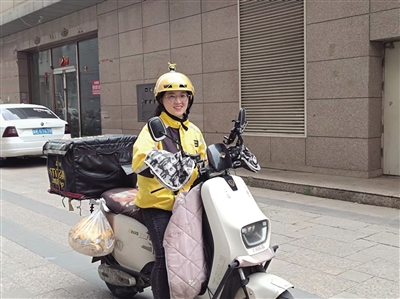 “每天从8时到21时,有10个小时在路上,午饭和晚饭都不能准点吃,午饭在外面吃,一边送外卖,一边抽空儿吃个饼充饥。太忙的时候不能吃,得等14时下线后再吃。”薛素芳说,干哪一行都不容易,都要有吃苦耐劳的精神。