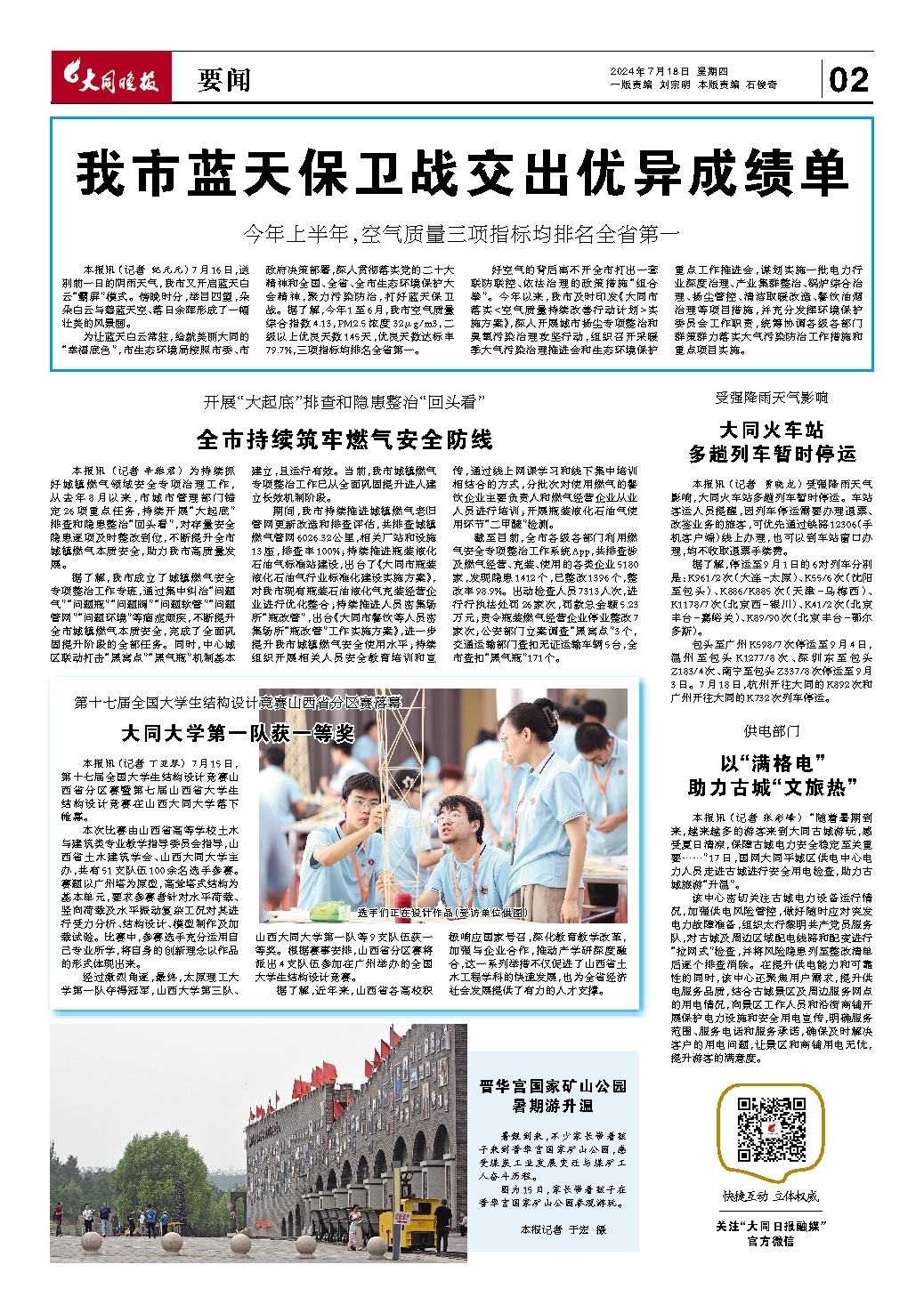 ~~~今年上半年,空气质量三项指标均排名全省第一