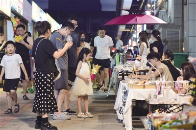 据了解,“玖街时光里”夜市销售的多是烤冷面、炒饭、臭豆腐等小吃,环境干净整洁、灯火通明,吸引了众多市民和游客。随着客流量增多,各种网红美食也进入了夜市,让这里变得更火了。“期待更多游客来我市感受历史文化和风土人情,来这里体验人间烟火气。”一名摊主说。