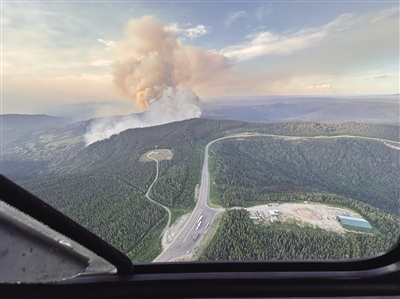 ▲ 这是7月17日在加拿大不列颠哥伦比亚省东北部地区拍摄的野火情况(航拍照片)。