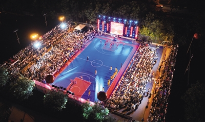 22日晚,广灵县第四届篮球联赛暨星空音乐会在该县体育中心火热进行。在为期10天的赛程中,14支代表队激烈角逐,让当地居民体验到了篮球运动的激情。图为篮球赛现场。