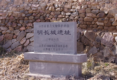 这道墙就是明长城,建于明嘉靖年间。那年月烽烟四起,来自草原的铁骑时常袭扰大明边境,有限的兵力难以应付数百里防线的警情,于是朝廷效仿旧法,缘边增筑边墙,加固防线。今天的资料显示,明长城东起辽东镇虎山,西至甘肃镇嘉峪关,连接起辽东、蓟州、宣府、大同、山西、延绥、陕西、宁夏、甘肃等九镇之地。长城从宣府进入大同的第一站,就是平远头。