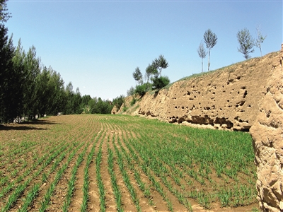 村子不算大,也不算小,坐落在连绵的山麓南缘,横跨两个冲沟。冲沟,地理学名词,粗略解释为流水侵蚀形成的沟状地貌。冲沟之间的平缓坡地,看似散落的民居拼出村子长方形的全貌,一道高大的土墙横亘东西。
