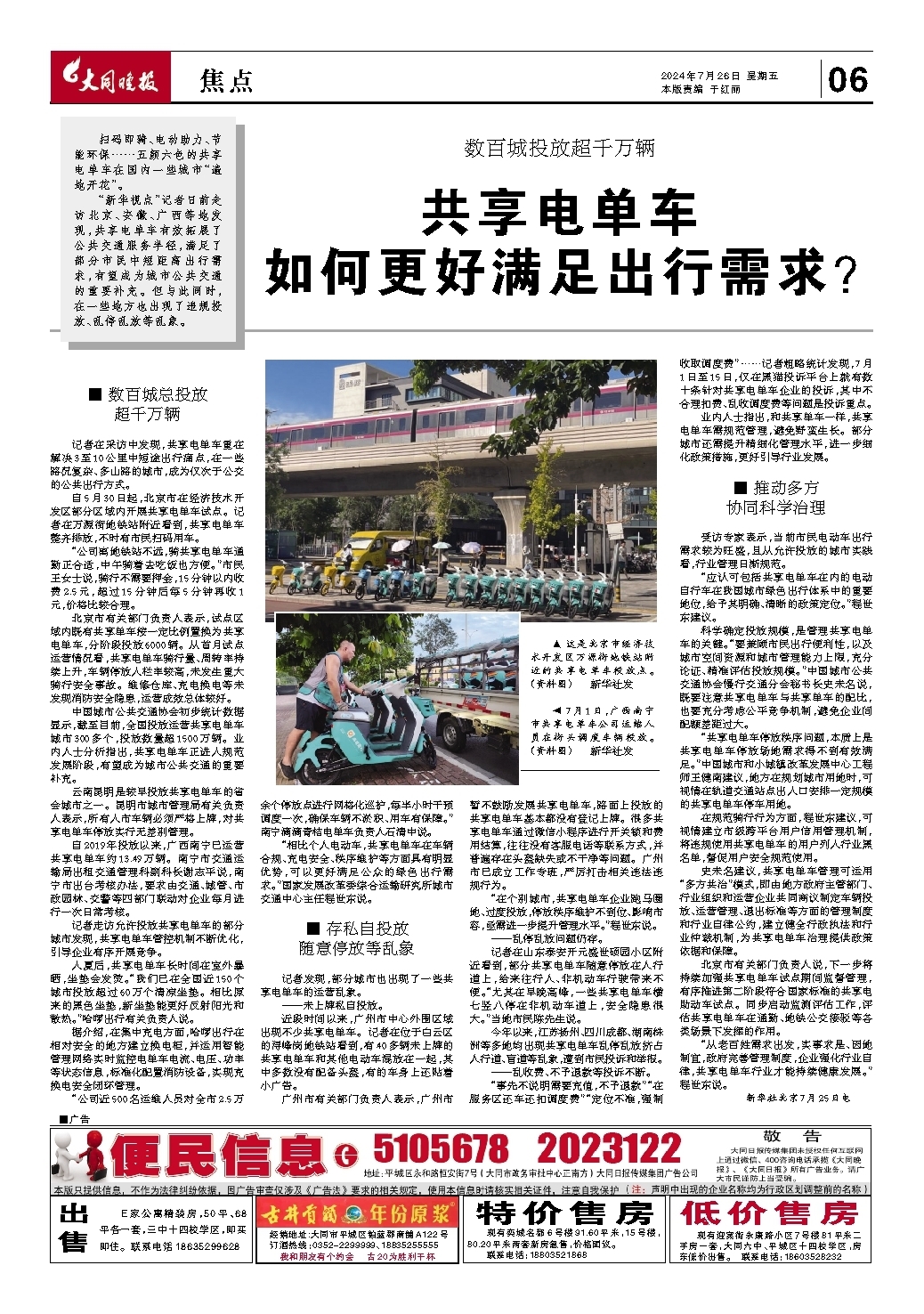 共享电单车 如何更好满足出行需求?