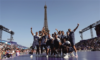 ▶ 7月29日,部分获得奖牌的法国运动员在埃菲尔铁塔前留影。