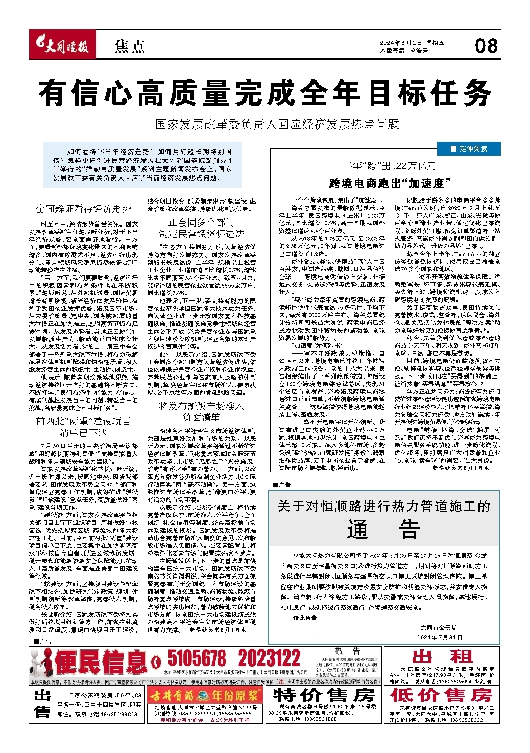 全面辩证看待经济走势~~~——国家发展改革委负责人回应经济发展热点问题