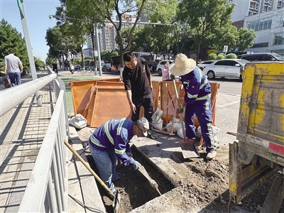 记者昨日在御河西路与北都街交汇的西北角和西南角看到,工人师傅正在对原有的立式雨水收水口进行升级改造。“改造后的雨水收水口不仅增加了收水面积,提升了排水量,还能有效应对汛期的强降雨。”现场施工的李师傅告诉记者。