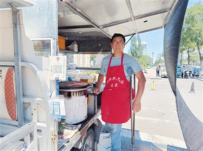 每天早上5时许,冯伟就开始了出摊前的准备工作,调面糊、打豆浆,把鸡蛋、葱花、香菜、薄脆等配料摆进煎饼车。接近6时,他便开着煎饼车出发了。煎饼车固定停在我市一家医院门口,离他的家不到两公里路程。“这里的生意一般,周一到周五,我只干一上午,中午就收摊了。”冯伟说。