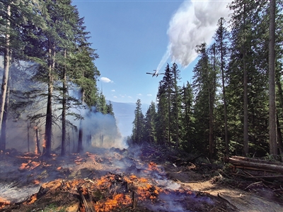 ▲ 8月1日,一架飞机在加拿大不列颠哥伦比亚省东南部地区上空灭火。