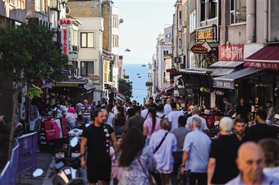 ▼ 8月2日,游客在土耳其伊斯坦布尔街道上游览。