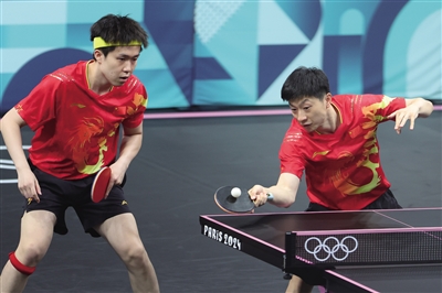 8月7日,中国组合马龙(右)/王楚钦在比赛中。