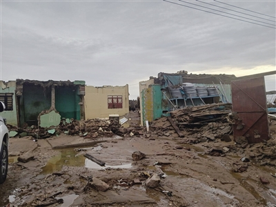 ▲ 这是8月6日在苏丹北部尼罗河州阿布哈马德市拍摄的被洪水损坏的房屋。