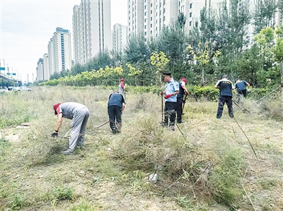 近日,悦家物业旗下的开源金懋府和丽景东苑小区,组织开展了清除杂草、美化环境行动。物业工作人员分工合作,不仅将小区外围沿街绿化带的杂草拔除、清运,还进行了卫生死角的垃圾清理,改善了道路两旁环境卫生质量,优化了业主生活居住环境。