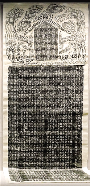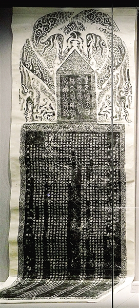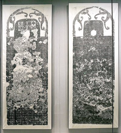 本次展览展出原拓作品11套,出自启母阙、太室阙、少室阙、中岳庙、少林寺、嵩阳书院等建筑,多数为皇家敕造,规格甚高。另外,展览中的《大唐嵩阳观纪圣德感应之颂碑》为1∶1拓片复制,现存于登封市城北2.5公里嵩阳书院大门外,唐天宝三载(744年)二月五日立,整碑高约9.02 米,由碑跌、碑身、碑首组成。该碑雄伟壮观,为嵩山第一大碑。