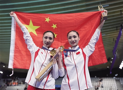 8月10日,巴黎奥运会花样游泳双人项目的最后一项比赛双人自由自选在巴黎奥林匹克水上运动中心举行。中国组合王柳懿/王芊懿夺得冠军。 新华社发