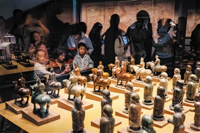 图为11日,游客参观博物馆内北魏陶俑。 本报记者 韩堃 摄