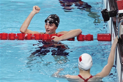 这是属于麦金托什的舞台。一个人参加7项比赛,她夺得女子400米个人混合泳、200米个人混合泳和200米蝶泳三金,并在后两项比赛中打破了奥运会纪录。