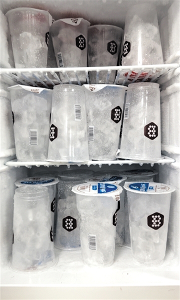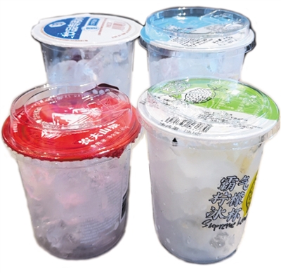 目前,市面上售卖的冰杯大致可分为两种:一种是纯净水冰杯,配料表里只有水;另一种则是带口味的冰杯,有咖啡口味冰杯、水果口味冰杯等。