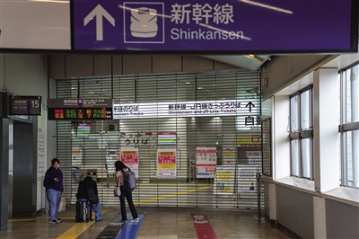 ▲ 8月16日,乘客站在关闭的日本东京品川新干线站点旁。