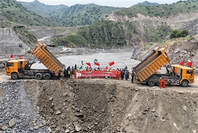 ◀8月16日,在巴基斯坦西北部的斯瓦特地区,中企承建的莫赫曼德水电站项目举行截流仪式。