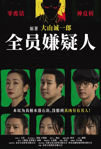 由傅鸫导演执导,小沈阳、秦海璐、曹恩齐领衔主演,王紫逸、金梦阳子、董畅主演的悬疑电影《全员嫌疑人》发布定档海报及定档预告,并官宣电影将于暑期档8月31日全国上映。该影片由“推理之神”著称的大山诚一郎的同名小说改编,更是获得书粉“零废话,神反转”的高度评价,此次将小说作品搬上大荧幕,无疑又会收获一众悬疑类狂热粉丝。