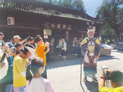 记者在现场看到,“悟空”头戴紧箍咒、身披金甲战衣、手持金箍棒,英姿飒爽地行走在景区内,成为一道靓丽的风景线。