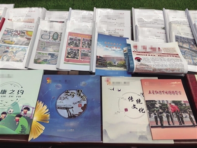 记者走访多地观察到,不少中小学校都有一间堆满汇报材料、奖杯奖状、陈列展板的教室用于迎检。形式多样、内容丰富的学生手工作业是重要的展示内容。