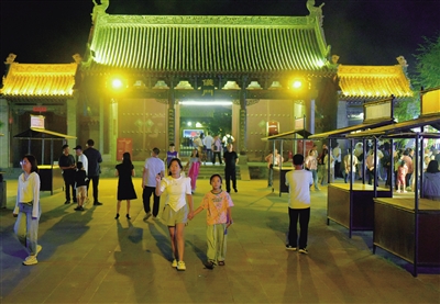 图为8月30日晚,游客在浑源古城赏美景、品民俗。