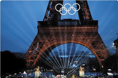 今年6月,奥运五环标志被安装在埃菲尔铁塔上,每个环直径约为9米,整体造型长29米、高13米。为完成这项作业,动用了4台起重机和约30人的工程团队。新华社微特稿