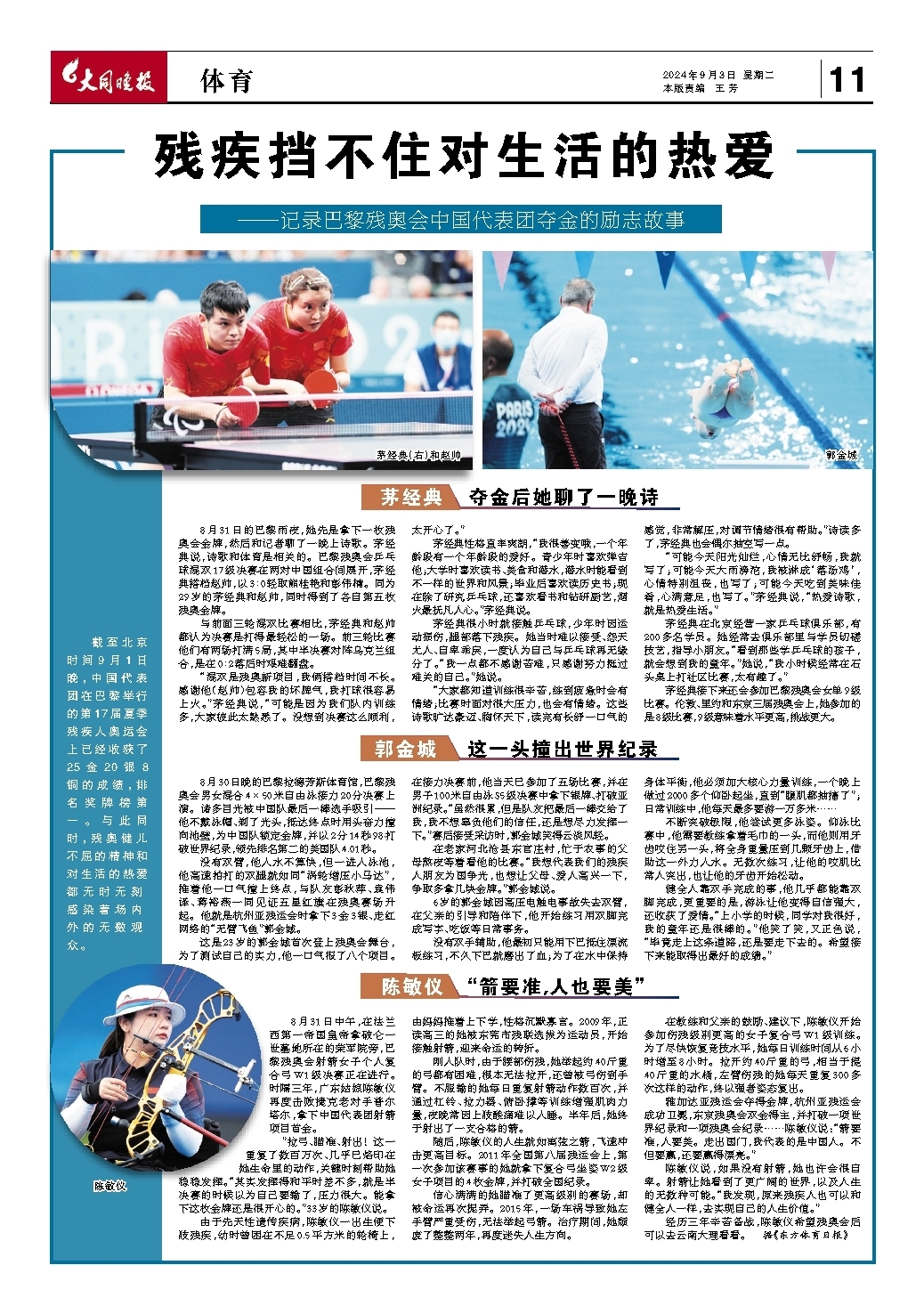 ~~~——记录巴黎残奥会中国代表团夺金的励志故事