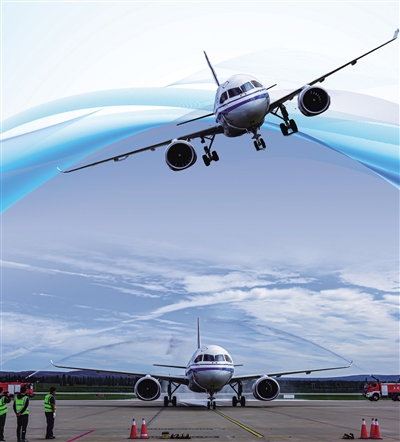 9月5日早6时40分,伴随着巨大的轰鸣声,国航首架C919国产大飞机稳稳降落在大同云冈国际机场。在完成近3个小时30个起降架次的本场训练后,大同机场以民航界以最高礼遇“过水门”仪式,欢迎C919客机在我省开展首训。