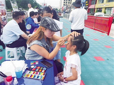 活动设置了口腔检测、视力检测、科学体检、科普课堂、床品除螨、面部彩绘等“摊位”,充分满足社区居民需求。医务人员现场为居民测量血压血糖、检查视力、口腔,结合生活中遇到的问题一对一为居民耐心讲解;科普课堂现场进行科学实验,吸引了许多小朋友;面部彩绘“摊位”前,彩绘老师根据小朋友们的喜好,将他们喜欢的图案绘画在脸上,让小朋友们兴奋不已。